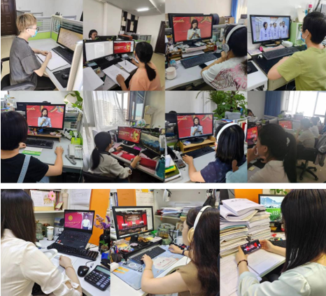 (部分职工在自己的工位上观看直播活动)