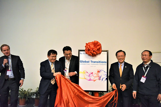 主题报告结束后,由科爱总经理Gert-Jan宣布新刊 Global Transition 正式创刊,主编陈劲教授,科学出版社总经理彭斌,Elsevier董事长YS Chi及编委吕永龙教授共同揭幕。