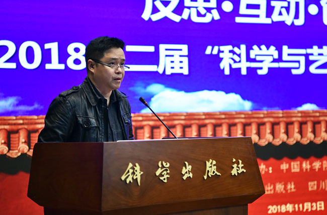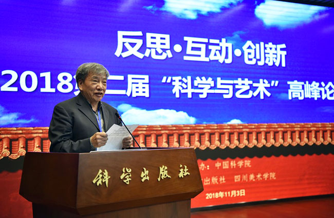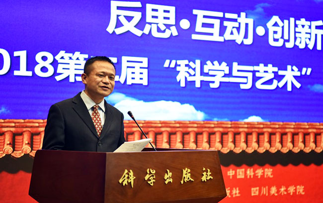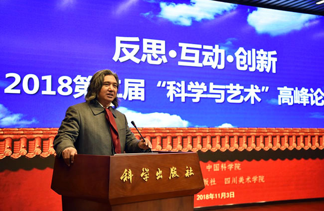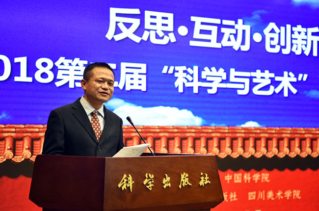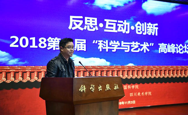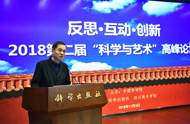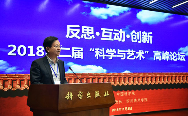 2018年11月3日,作为中国科学院首届“科学节”重要活动之一的“反思·互动·创新——2018第二届‘科学与艺术’高峰论坛(北京)”在科学出版社胜利召开,本届论坛由中国科学院主办、科学出版社和四川美术学院承办。出席本届论坛的嘉宾有中国美术馆馆长吴为山先生、中国科学院院士刘嘉麒先生、四川美术学院院长庞茂琨先生、中国艺术科技研究所副所长牛根富先生、四川美术学院副院长张杰先生、科技部引智司科普处处长邱成利先生、清华大学美术学院张敢先生等艺术界、科学界著名专家。出席嘉宾涉及单位含中国科学院、科技部、中国美术馆、中国艺术科技研究所、中国科学院大学、清华大学、北京师范大学、中国人民大学、四川美术学院、中央美术学院、中国美术学院、同济大学、上海交通大学、华中科技大学、重庆大学、北京社会科学院、西安交通大学、北京电影学院、中央戏剧学院、东南大学、湖北美术学院、西安美术学院、中央民族大学、广州美术学院、北京服装学院、湖北大学、北京科技大学、北京林业大学、西安工程大学、四川师范大学、重庆师范大学、沈阳师范大学、广西师范大学、中科院幼儿园、电子科技大学、首都师范大学、河北大学、中原工学院、巢湖学院、上海科技馆、青岛科技大学、长春工业大学、福建农林大学、厦门大学、中国科普研究所、中国科教电影电视协会等(排名不分先后)60余所高校及科研院所,总计出席论坛嘉宾人数130余人。