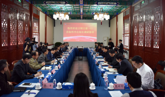 座谈会上,在听取科学出版社党委书记、董事长林鹏对科学出版社期刊改革和发展的汇报后,万钢表示,科学出版社是中国最老牌的科技期刊出版社,为新中国的辉煌历史作出了很大贡献,科学出版社本身也是科技改革的成果。