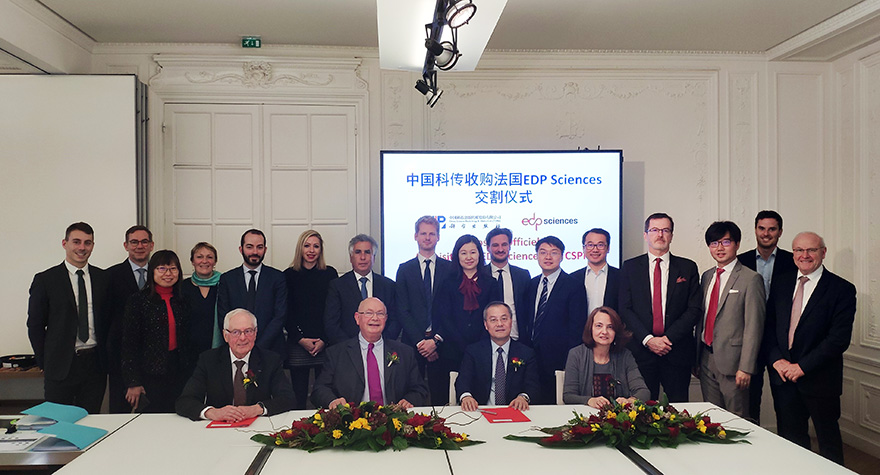 北京时间2019年11月13日,fun88乐天堂(简称“fun88乐天堂”)与法国物理学会、法国化学学会、法国光学学会、法国应用数学与工业学会4家学会在法国巴黎举行了收购Edition Diffusion Press Sciences SA(简称“EDP Sciences”)100%股权的签约仪式。
